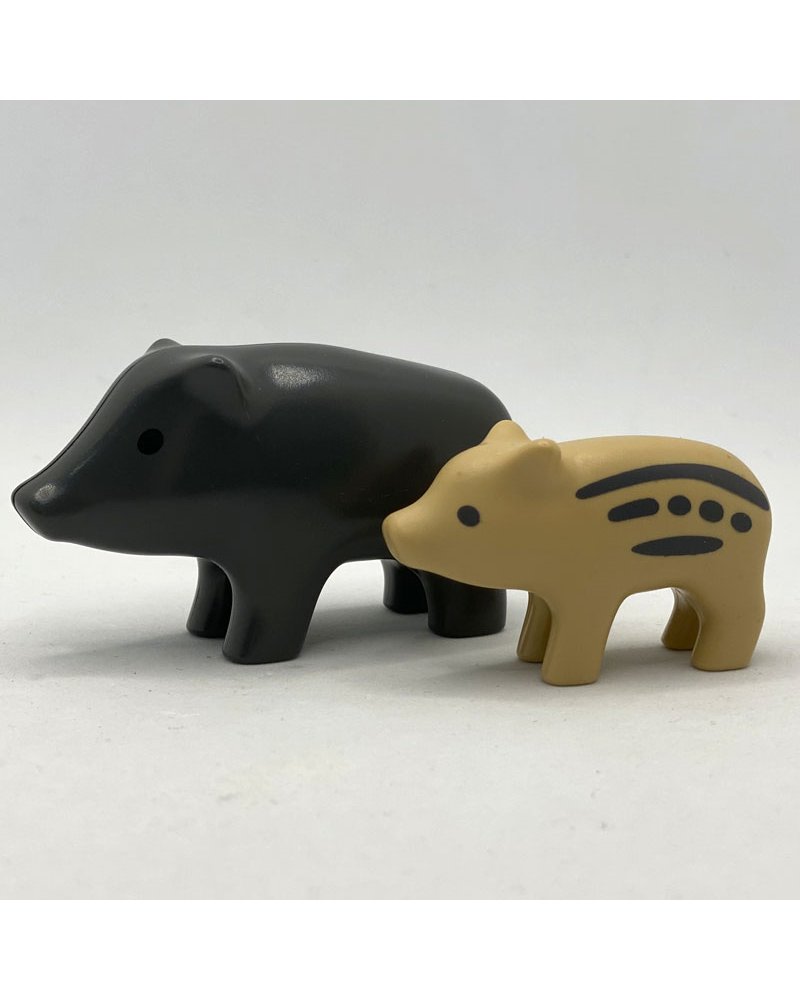 La familia jabalí son unas figuras de playmobil 123, el lote incluye un jabalí y un jabato.