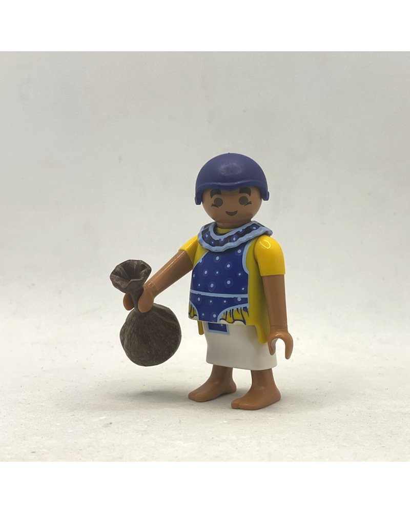 El Playmobil egipcio catador eunuco, está compuesto por la figura egipcia con el tono de piel +2, un gorro azul que hace a su vez de peluca y un saquito. Al tratarse de piezas reacondicionadas, puede que los saquitos cambien de color, ya que los utilizamos de productos recuperados de nuestro almacén. Con estas acciones Le hemos vuelto a dar la vida a otra figura de Playmobil.