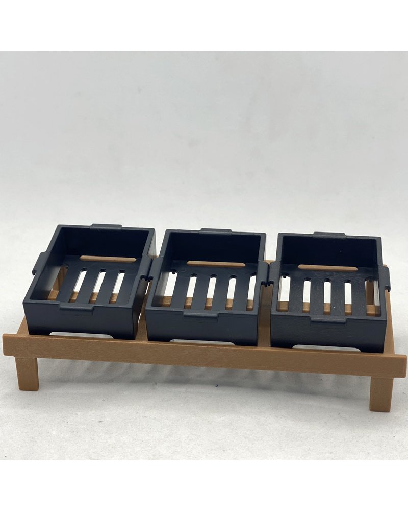 El accesorio de playmobil puesto mercado OTR145, está compuesta por un puesto de mercado, que le acompaña tres cajas vacías, de tamaño grande.