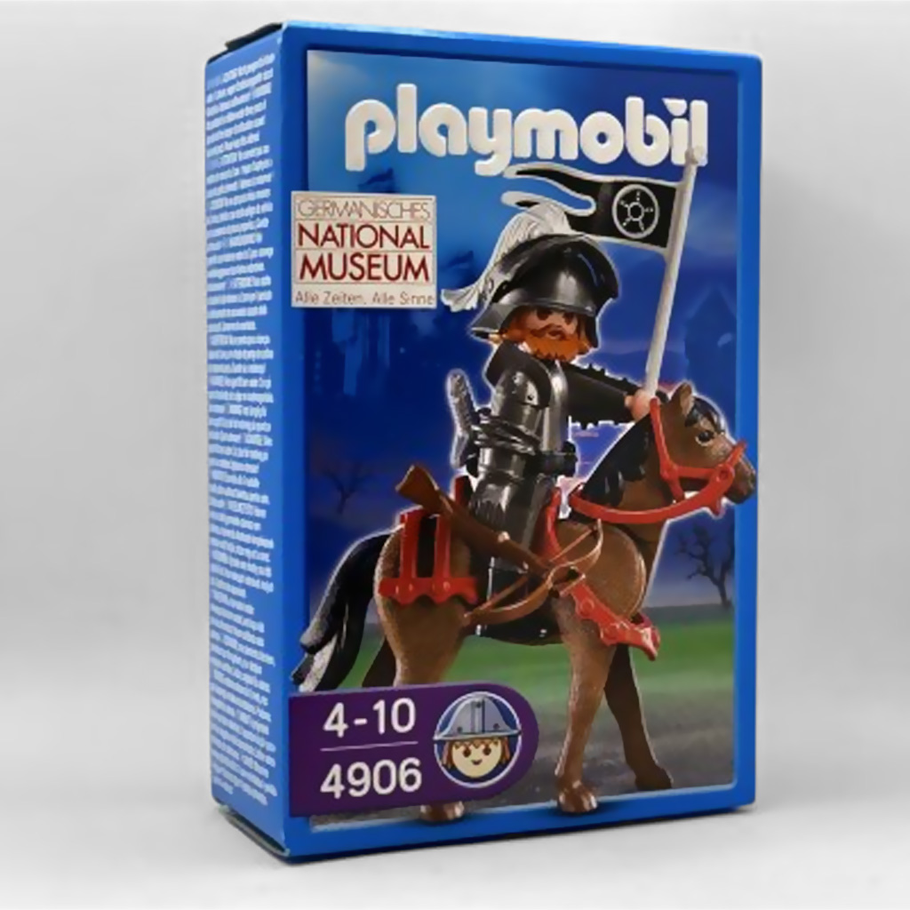La figura del «Caballero del Museo» de Playmobil, con la referencia 4906, es una edición especial que representa a Götz von Berlichingen, un caballero alemán del siglo XV conocido por su participación en diversas batallas y por su famosa mano de hierro prostética. Esta figura fue creada en colaboración con el Germanisches Nationalmuseum de Núremberg para la exposición temporal «Mythos Burg», dedicada al mundo de los castillos.