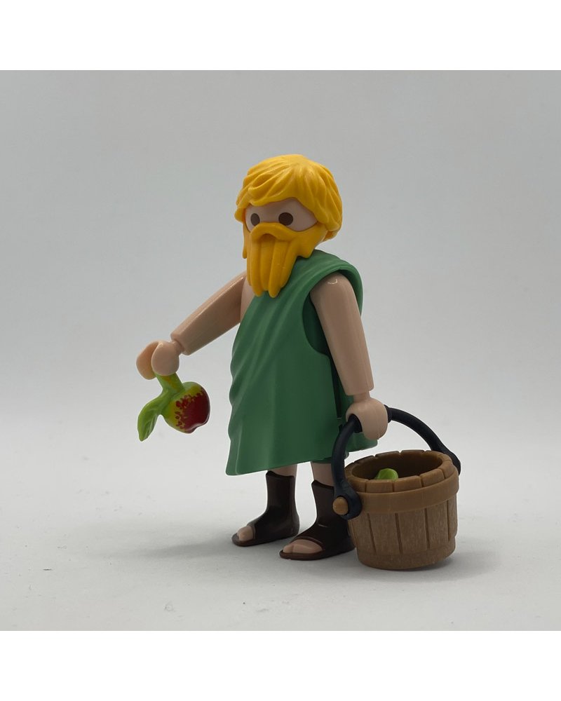 Frutero de Playmobil. Frutero rubio con un cubo y un par de manzanas verdes. Lote perfecto para tu belén y que te da juego a combinar cualquier set que tengas de Playmobil, por ejemplo la época medieval o la época romana.