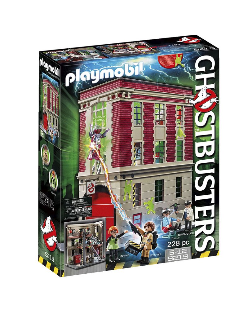 El producto de playmobil cazafantasmas cuartel parque de bomberos 9219, podrás encontrar las siguientes funciones; la puerta principal se puede abrir tirando de ella hacia arriba. Puedes aparcar el coche oficial de los cazafantasmas Ecto-1, el cual se vende por separado con su referencia 9220. El coche no está incluido en esta caja. Los fantasmas capturados se mantienen almacenados en la "Unidad de contención de fantasmas" en el sótano. Para colocar a los fantasmas aquí, abrir la tapa de color rojo, se desliza la trampa fantasmas por una ranura correspondiente y activa el interruptor. Incluye Ray Stanz con traje de cazafantasmas, Egon Spengler con bata de laboratorio, Janine como secretaria, Louis Tully, maestro de las llaves, y el fantasma de la biblioteca. Las figuras se pueden coger a la barra y deslizarse hacia abajo para llegar lo antes posible a la acción. En la primera planta se encuentra el laboratorio de los cazafantasmas con varios accesorios. En la segunda planta, la oficina con accesorios, también hay como accesorios el equipo y disparador de protones, apertura de trampa fantasma, mediador de PKE para medir la energía psicoquinética y baba de silicona que se adhiere a superficies lisas.