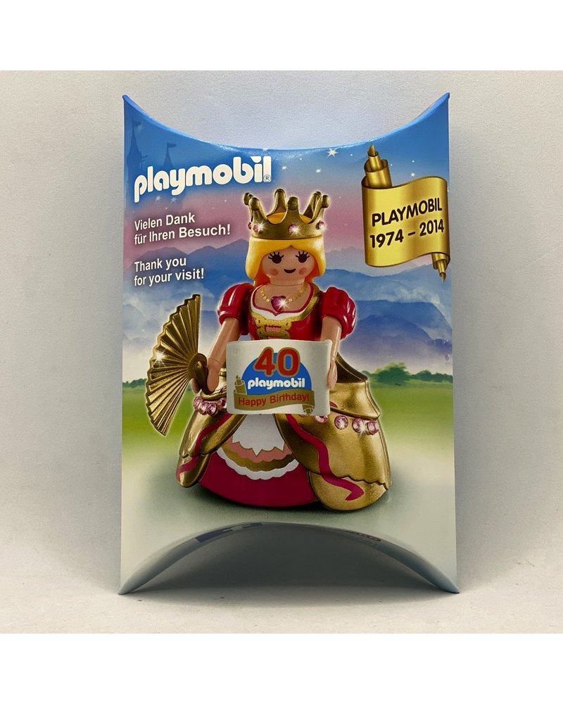 La caja de Playmobil promocional reina 40 aniversario, es una referencia exclusiva de Playmobil, se fabricó en exclusividad para entregarla en la feria de juguete de Núremberg (Alemania) en 2014.