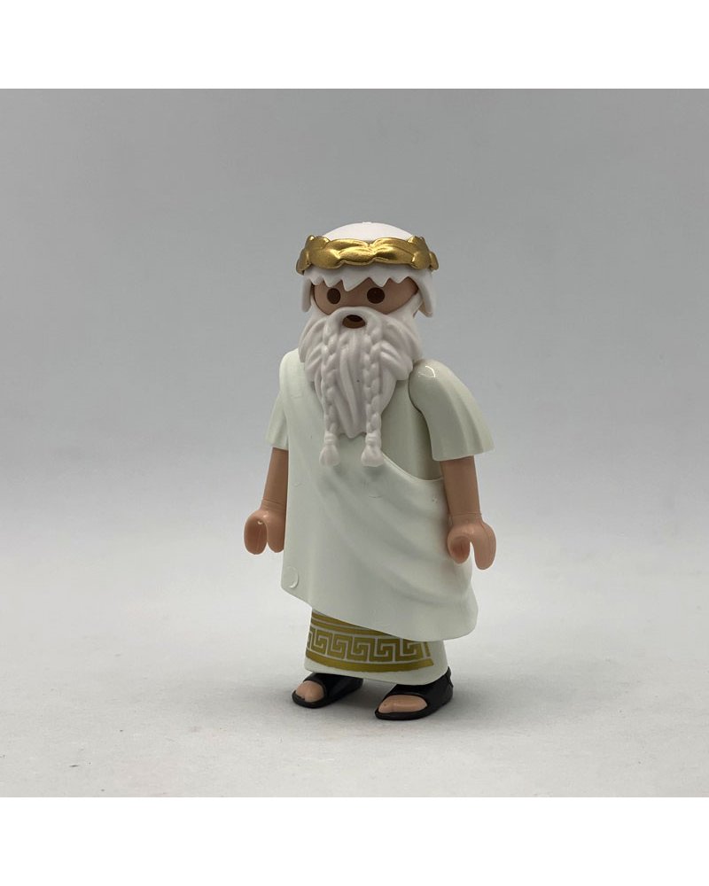Playmobil senador romano FCO535, está compuesto por una figura romana con sandalias, una toga, pelo y barba de color blanca, se incluye una corona de laurel dorada.