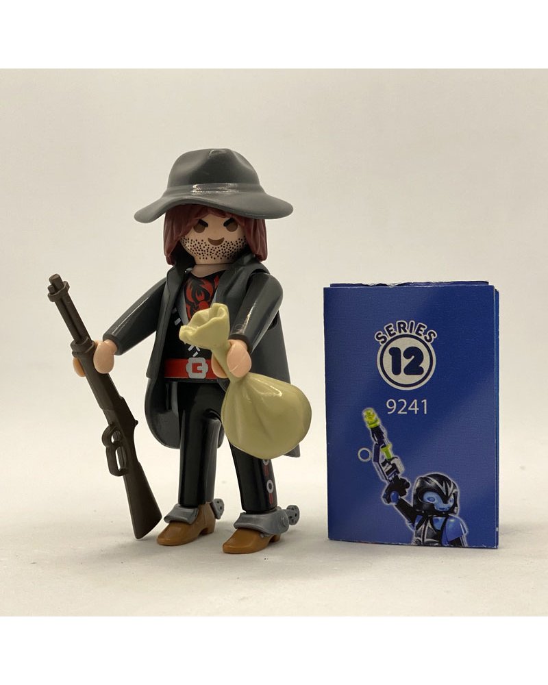 El Playmobil cowboy & oro serie 12 chicos 9241, va acompañado con un saco, sombrero y un winchester. Referencia 9241.
