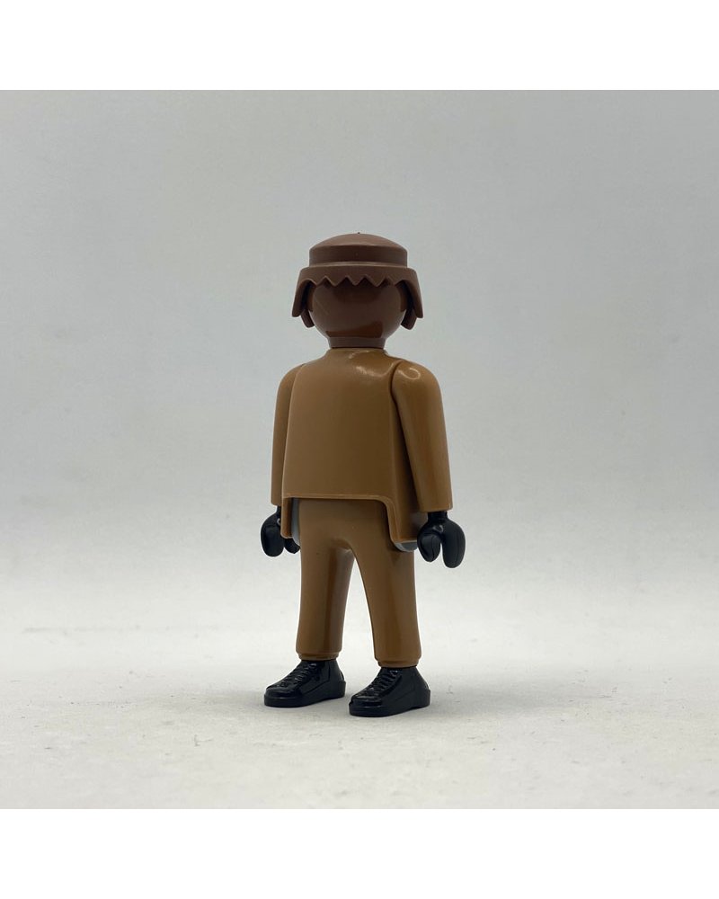 El Playmobil marrón neutra, compuesto por un muñeco de playmobil marrón, con su característica cabeza totalmente marrón neutra, sin ojos, ni boca, sin ninguna expresión facial.